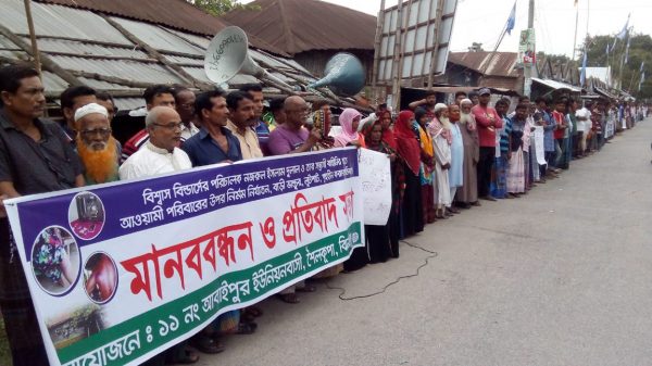 স্টাফ রিপোর্টার ঝিনাইদহের শৈলকুপায় আওয়ামী পরিবারের উপর নির্যাতন, নিপীড়ন, বাড়ীঘর ভাংচুর, হামলা, মালামাল লুটপাট ও গৃহহীন করার প্রতিবাদে মানববন্ধনসহ প্রতিবাদ সভা করেছে এলাকাবাসী। ১৯ জুন ২০১৮ মঙ্গলবার বিকালে উপজেলার আবাইপুর