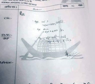 শাহনেওয়াজ সুমন, ঝিনাইদহ প্রতিনিধি ।। ফেসবুক থেকে নেয়া- ফেসবুকে একটি প্রেসক্রিপশন ভাইরাল হয়েছে। ঝিনাইদহ উজির আলী স্কুলে ভোটারদের জন্য ফ্রি মেডিকেল ক্যাম্পে আসা ডাক্তারের এই প্রেসক্রিপশনে নৌকার প্রার্থী পক্ষে এই