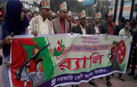আব্দুস সামাদ, ঝিনাইদহ সদর ।। মহান বিজয় দিবস উপলক্ষে ঝিনাইদহ সরকারি কেসি কলেজে পুষ্পমাল্য অর্পণ, র্যালি, আলোচনা সভা ও সাংস্কৃতিক অনুষ্ঠানের আয়োজন করা হয়। সকাল ৬.৩৯ মিনিটে কলেজ প্রাঙ্গণে জাতীয় পতাকা উত্তলোন করা হয়। সকাল সাড়ে ৭টায় র্যালি নিয়ে শহরের প্রধান প্রধান সড়ক প্রদক্ষিণ করে মুক্তিযুদ্ধ স্মৃতিসৌধে এবং