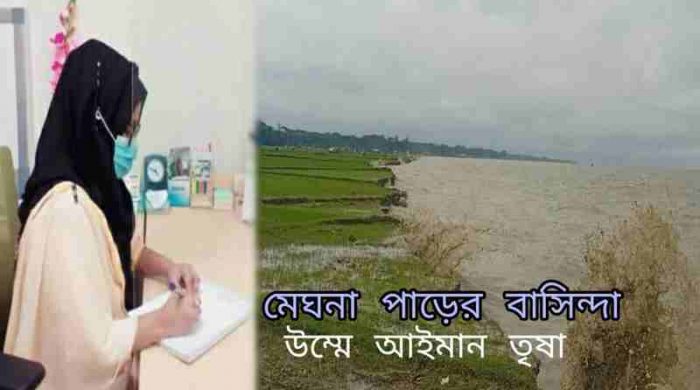 মেঘনা পাড়ের বাসিন্দা ———————————————- চারদিকে পানি থৈথৈ, মাছেরা করছে খেলা। তবুও মনে শান্তি নেই, মেঘনা পাড়ের বাসিন্দা যে মোরা। অসহায়ত্ব জীবন দেখতে চাও যদি, চলে আসো মেঘনার পাড়ে। নিঃস্ব আমরা