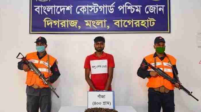 বাগেরহাটের মোংলা কোস্টগার্ড সদস্যরা গোপন সংবাদের ভিত্তিতে শনিবার (১৮ জুলাই) আনুমানিক বিকাল ৫ ঘটিকার সময়খুলনা জেলার দাকোপ থানার অধিনস্থ পানখালী ফেরিঘাট সংলগ্ন এলাকায় বিশেষ অভিযান পরিচালনা করে ৪০০ গ্রাম গাজা