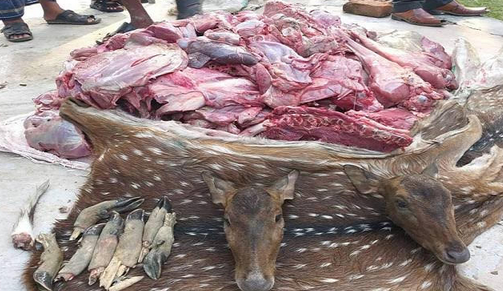 বায়জিদ হোসেন, বাগেরহাট।। সুন্দরবনের চাঁদপাই রেঞ্জের বাদামতলা থেকে শনিবার প্রায় দেড় মণ হরিণের মাংস উদ্ধার করেছে বনবিভাগ। তখন এক শিকারিকে গ্রেপ্তার করা হয়। বন কর্মকর্তা (ডিএফও) মোহাম্মদ বেলায়েত হোসেন জানান,