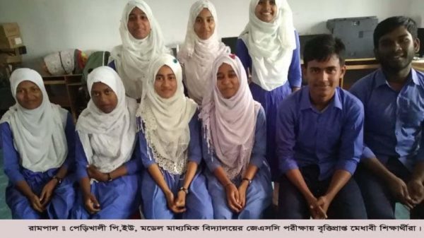 রামপাল (বাগেরহাট) সংবাদদাতা ॥ রামপালের পেড়িখালী পি,ইউ, মডেল মাধ্যমিক বিদ্যালয়ের জেএসসি পরীক্ষায় ট্যালেন্টপুলে ৬ ও ৩ জন সাধারণ কোঠায় বৃত্তি পেয়েছে। প্রতিবছরের ন্যায় এবারও সেরা সাফল্য ধরে রেখেছে ঐতিহ্যবাহী ওই