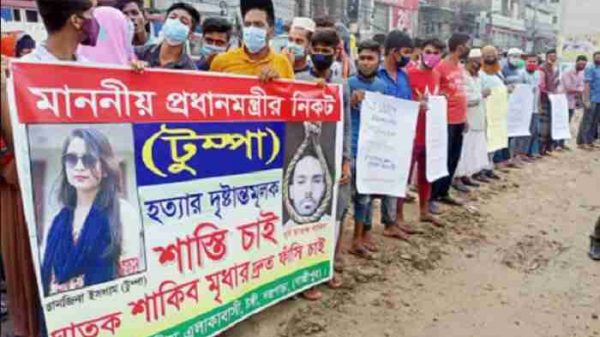 আশানুর রহমান, গাজীপুর।। টঙ্গীতে যৌতুকের দাবীতে স্বামী কর্তৃক স্ত্রীকে হত্যার প্রতিবাদে বৃহস্পতিবার (১৮ জুন) টঙ্গীর কলেজ গেইট এলাকায় এলাকাবাসী মানববন্ধন ও প্রতিবাদ সভা করেছে। এ ঘটনায় পুলিশ স্বামী সাবিক মৃধাকে