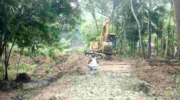 শরীয়তপুর সদর উপজেলায় পালং ইউনিয়ন ২নং ওয়ার্ড কোটাপাড়া গ্রামে প্রকল্প বাস্তবায়ন কর্মকর্তার যোগসাজসে অতি দরিদ্র কর্মসংস্থান কর্মসূচী প্রকল্পে মাটির রাস্তা নির্মাণ কাজে ভেকু মেশিন ব্যবহার করে মুক্তিযোদ্ধার পুত্রবধু বিধবা রেহেনা