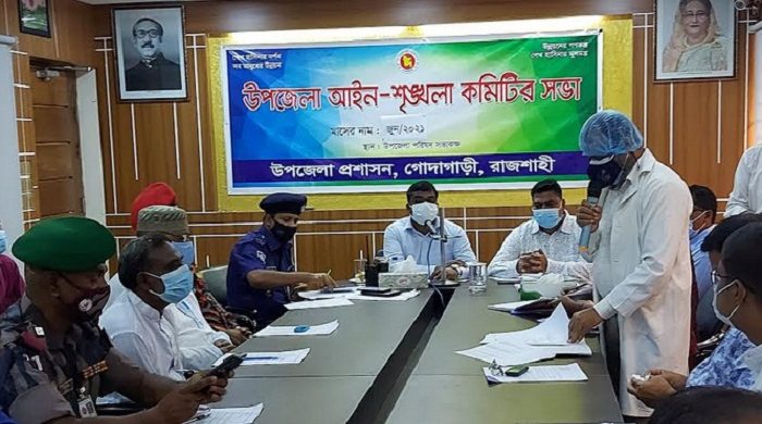 রাজশাহী জেলার গোদাগাড়ী উপজেলার আইন-শৃঙ্খলা, যৌতুক, চোরাচালান, সন্ত্রাস ও নাশকতা কমিটির মাসিক সভা অনুষ্ঠিত হয়েছে। বুধবার সকাল সাড়ে ১০ টায় উপজেলা সম্মেলন কক্ষে উপজেলা নির্বাহী অফিসার মোঃ জানে আলমের সভাপতিত্বে