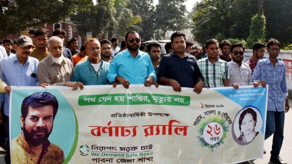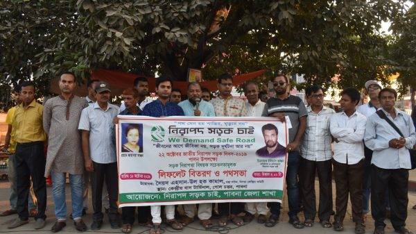 আর কে আকাশ, পাবনা।। “জীবনের আগে জীবিকা নয়, সড়ক দুর্ঘটনা আর নয়” এই প্রতিবাদ্যকে সামনে রেখে ২২ অক্টোবর ‘জাতীয় নিরাপদ সড়ক দিবস’ উপলক্ষে ৫দিন ব্যাপী বিভিন্ন কর্মসূচী গ্রহণ করেছে