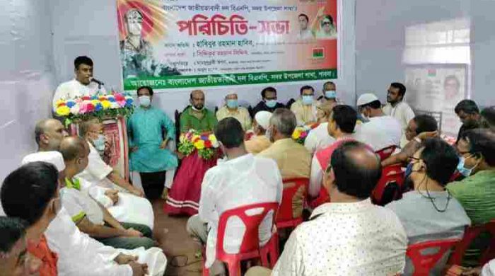 পাবনা সদর উপজেলা বিএনপির পরিচিতি সভা অনুষ্ঠিত হয়েছে। শনিবার বেলা ১২টায় জেলা বিএনপির কার্যালয়ে পরিচিতি সভায় প্রধান অতিথির বক্তব্য রাখেন, বিএনপি চেয়ারপারসনের উপদেষ্টা ও জেলা বিএনপির আহ্বায়ক হাবিবুর রহমান হাবিব