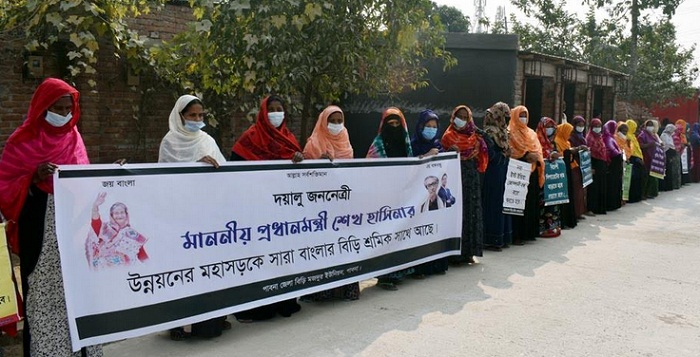 ২০২০-২০২১ অর্থবছরের বাজেটে বিড়ি শিল্পের ওপর কর বাড়ানোর প্রতিবাদে মানববন্ধন করেছে বিড়ি শ্রমিকরা। পাবনা জেলা বিড়ি মজদুর ইউনিয়নের উদ্যোগে বৃহস্পতিবার পাবনা উপ-কর কমিশনারের কার্যালয়ের সামনে এ মানববন্ধন এবং এনবিআর এর